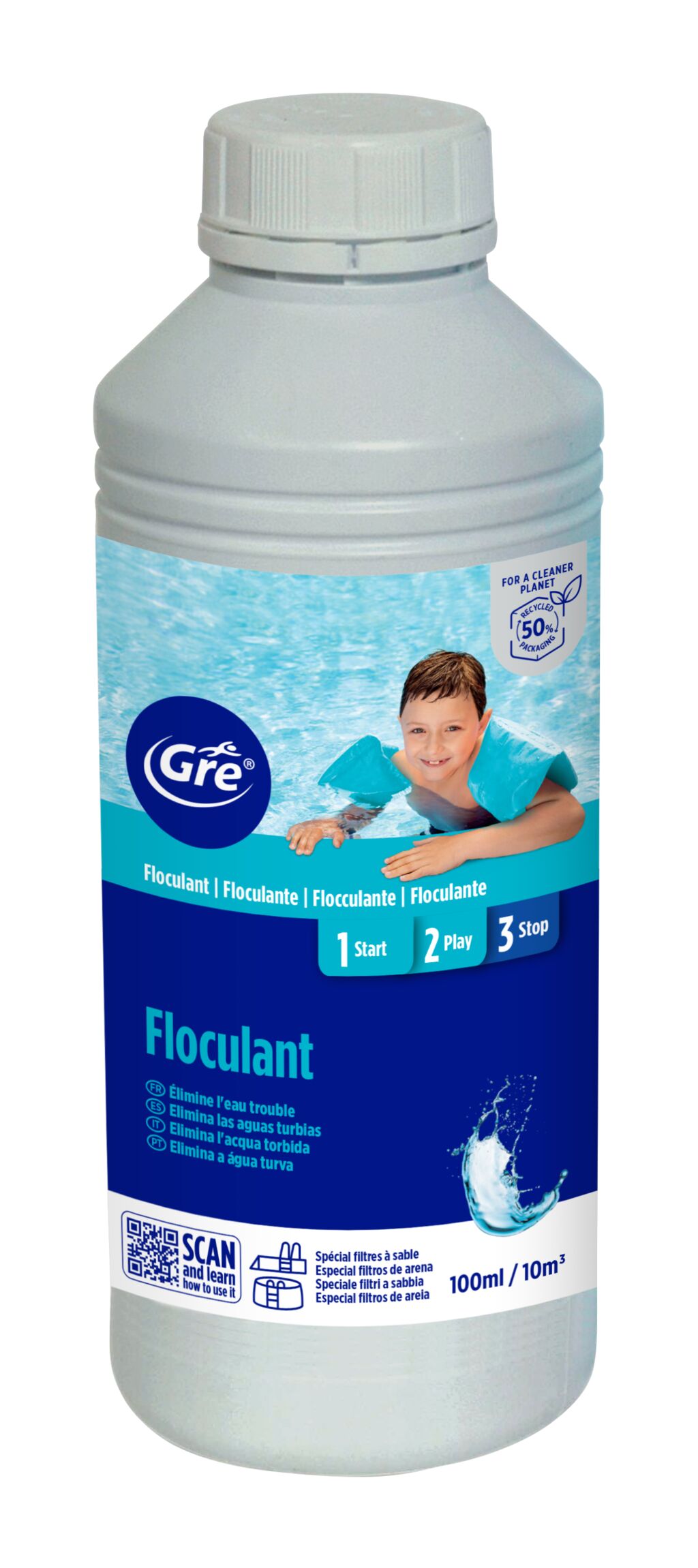 - Mantenimiento: Añadir 5ml de Floculante líquido por cada 10 m³ de agua